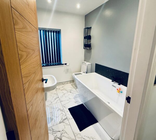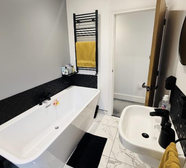 Upstairs, you’ll find two well-proportioned bedrooms. The master bedroom benefits from ample built-in storage, offering fantastic convenience and helping maximise space. The modern family bathroom has also been finished to a high specification, creating a calming retreat at the end of the day.